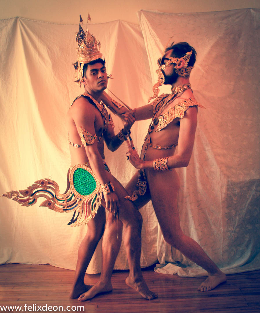 Sam and I using my Thai Gold costumes for a little photoshoot.